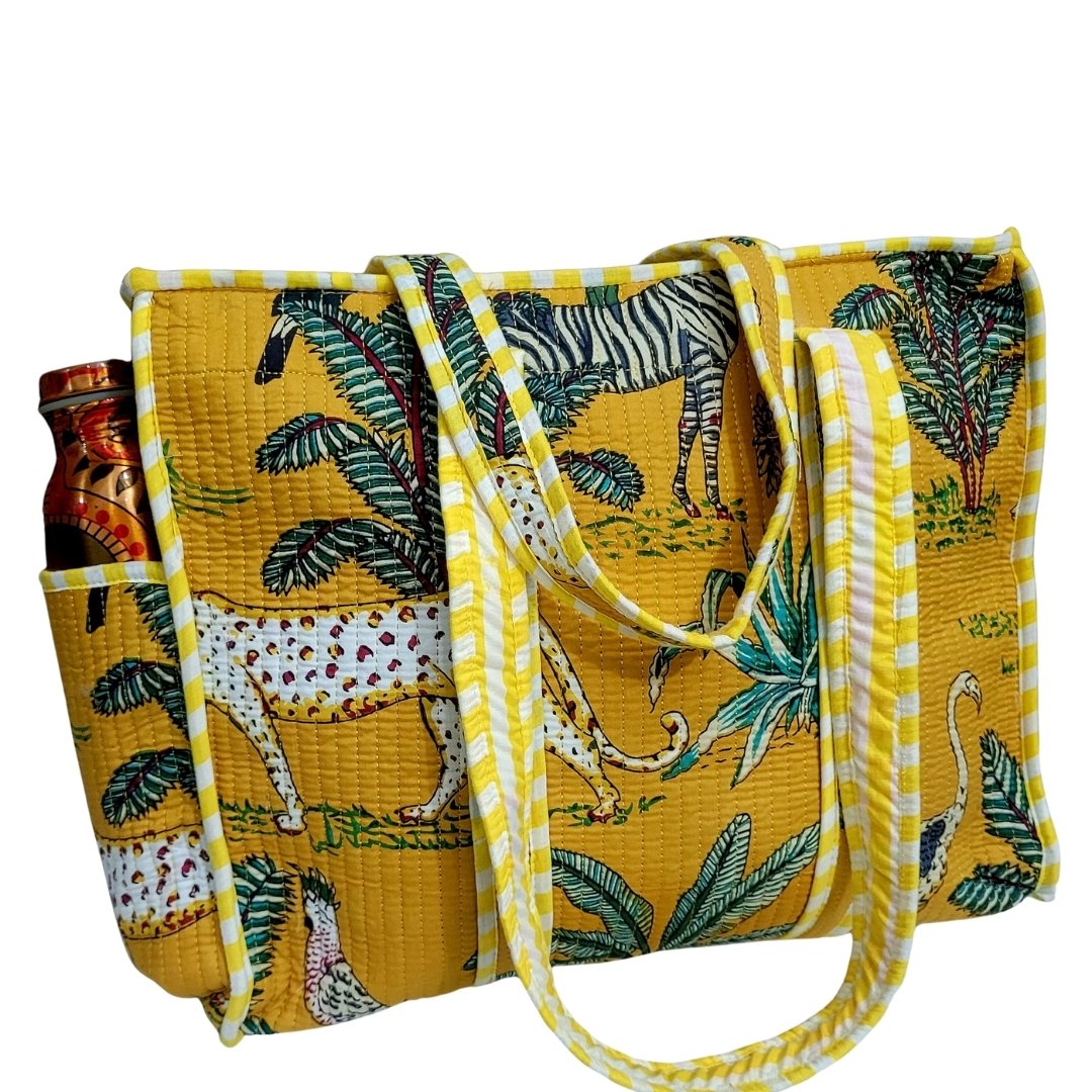 Handmade Cotton Printed Quilted Tote Bags with Bottle Space – Style 26
