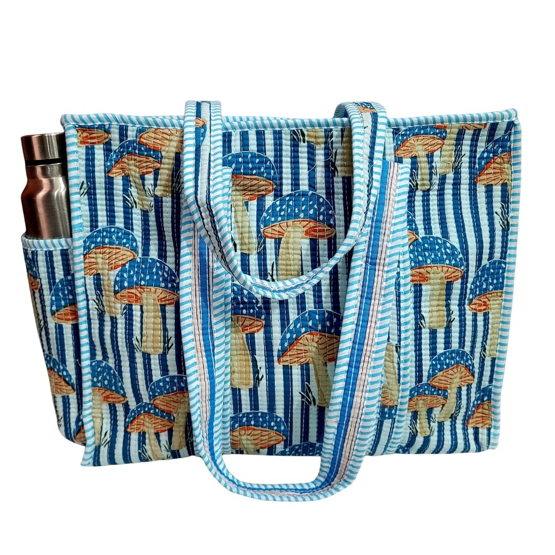 Handmade Cotton Printed Quilted Tote Bags with Bottle Space – Style 31