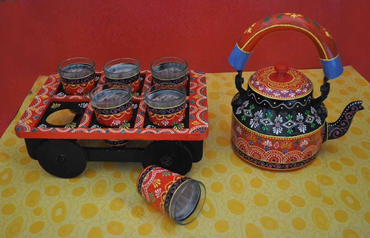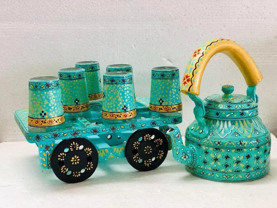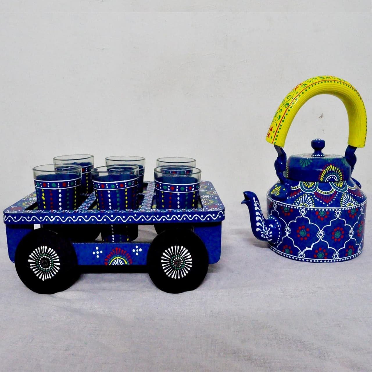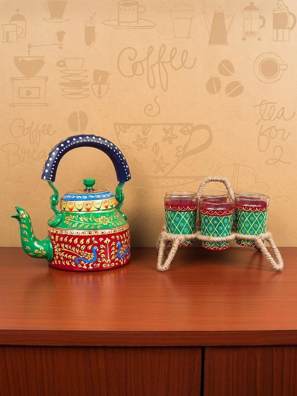 Be the first to review “Hand Painted Tea set with kettle |1 liter Kettle With 6 Handpainted Glass, Tray, Multicolour, Set of 8”
