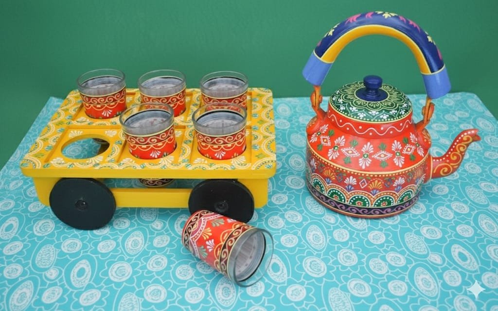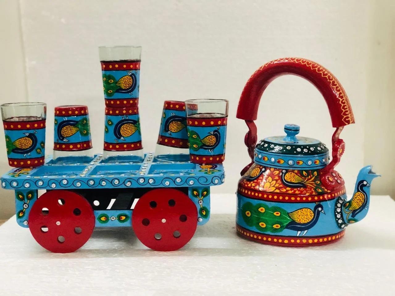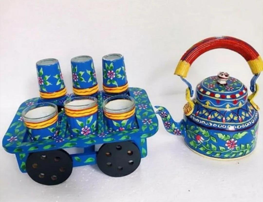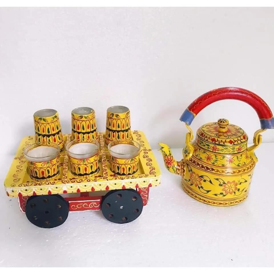 Be the first to review “Hand Painted Tea set with kettle |1 liter Kettle With 6 Handpainted Glass, Tray, Multicolour, Set of 8”